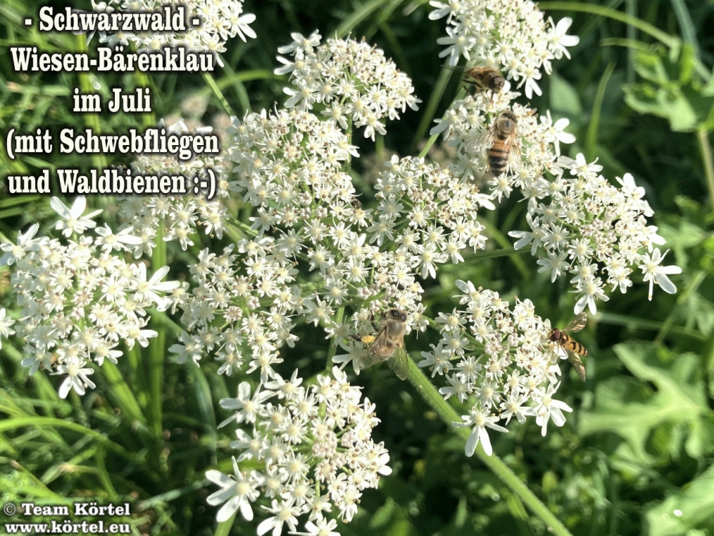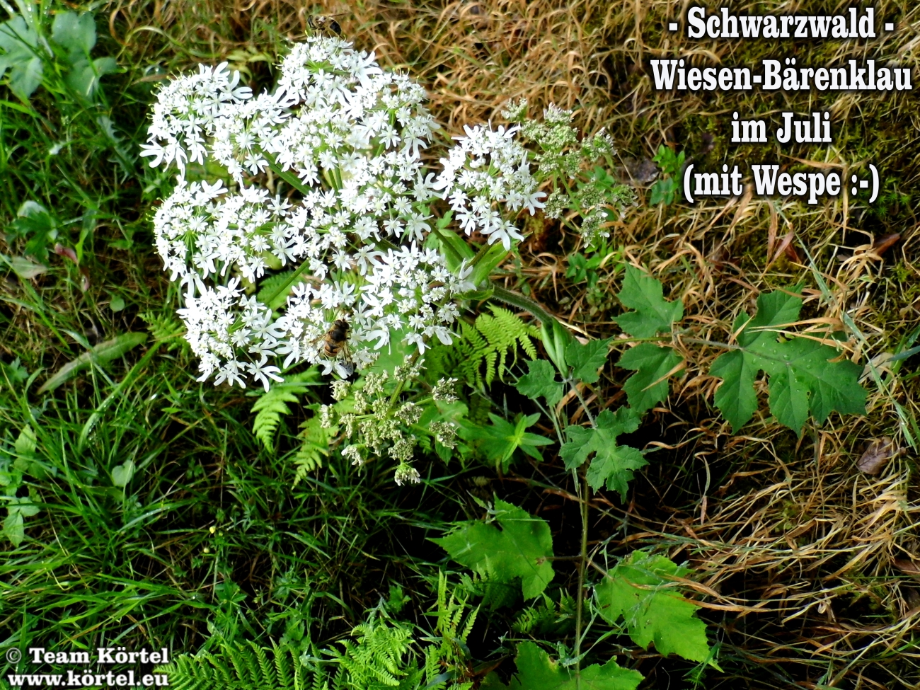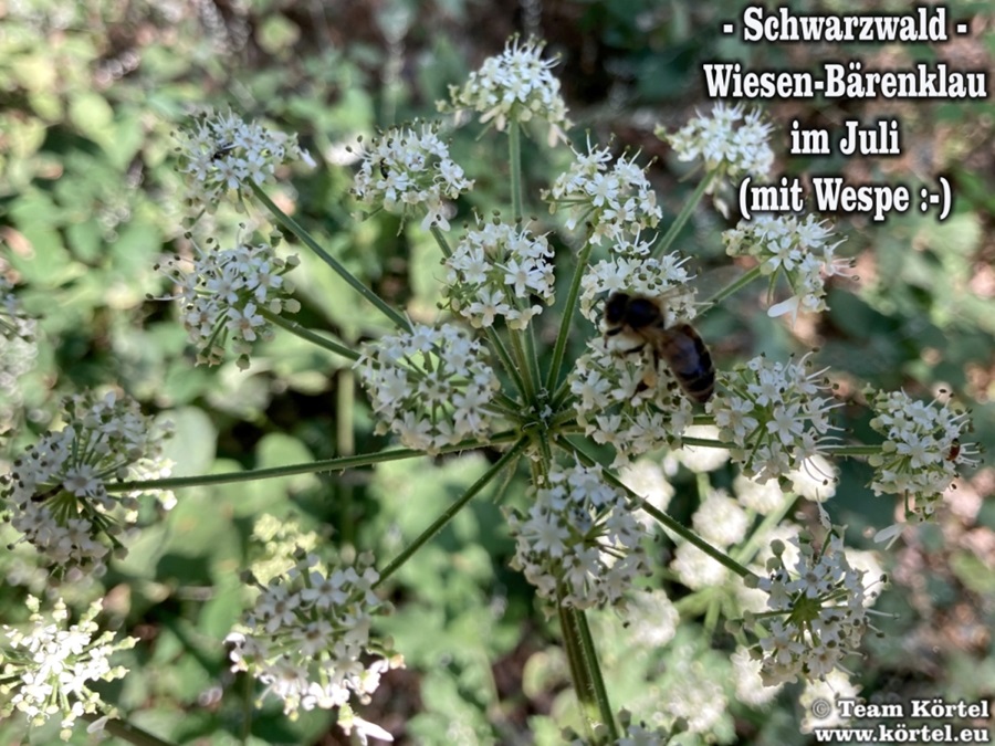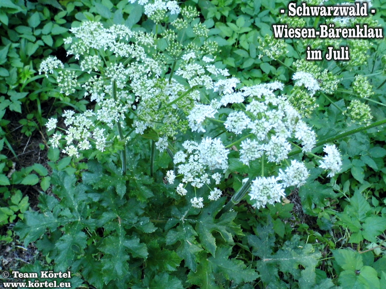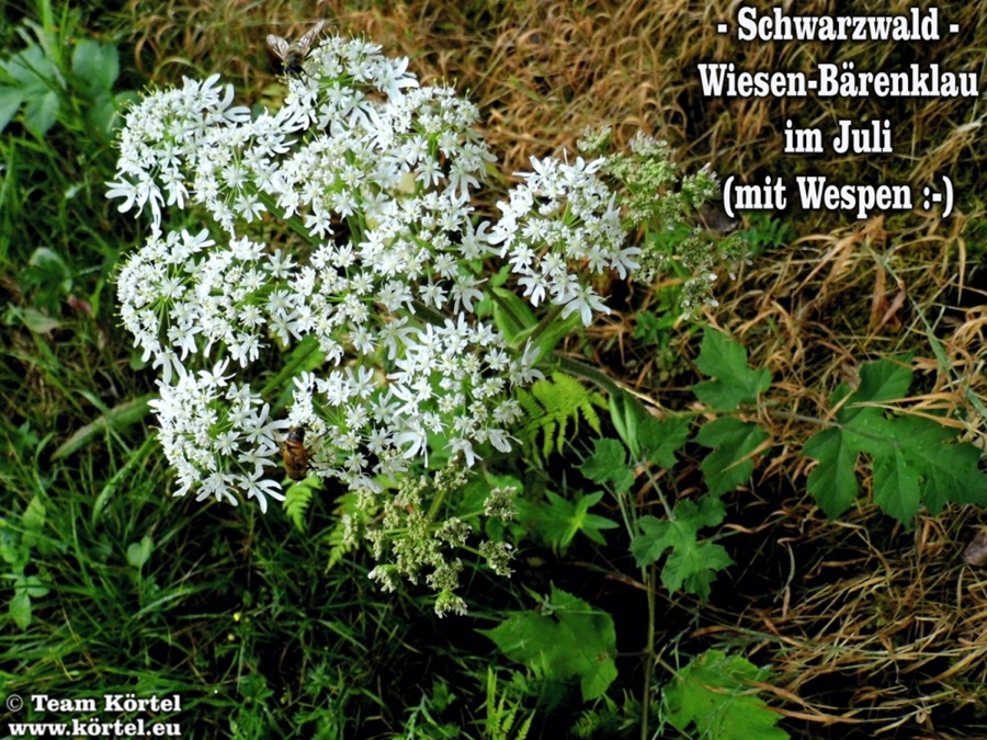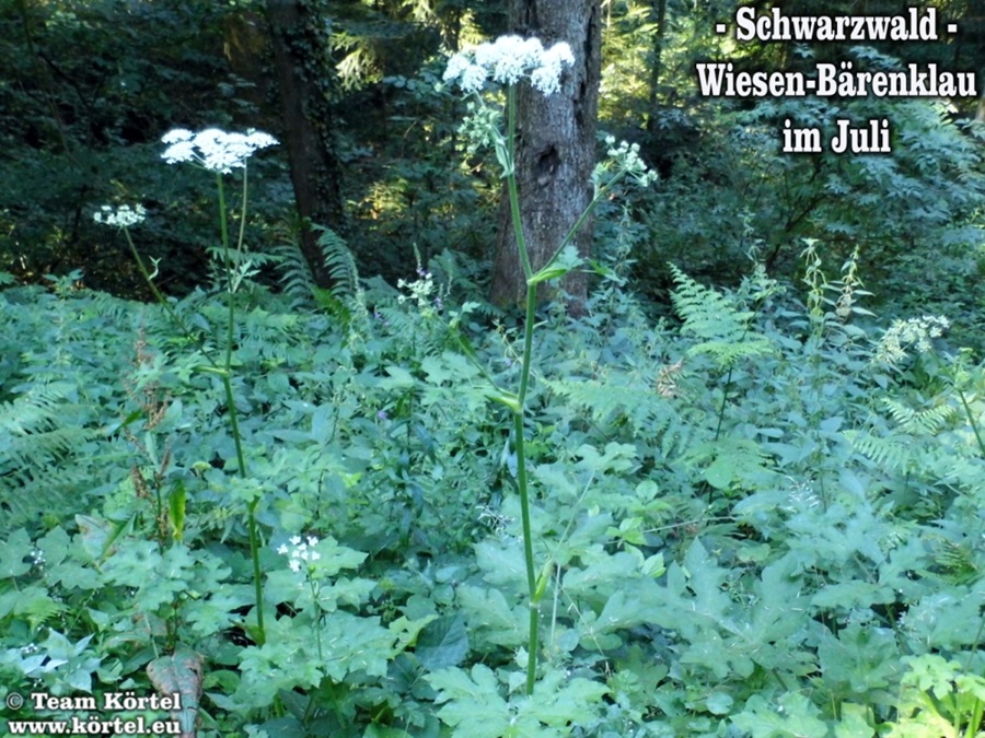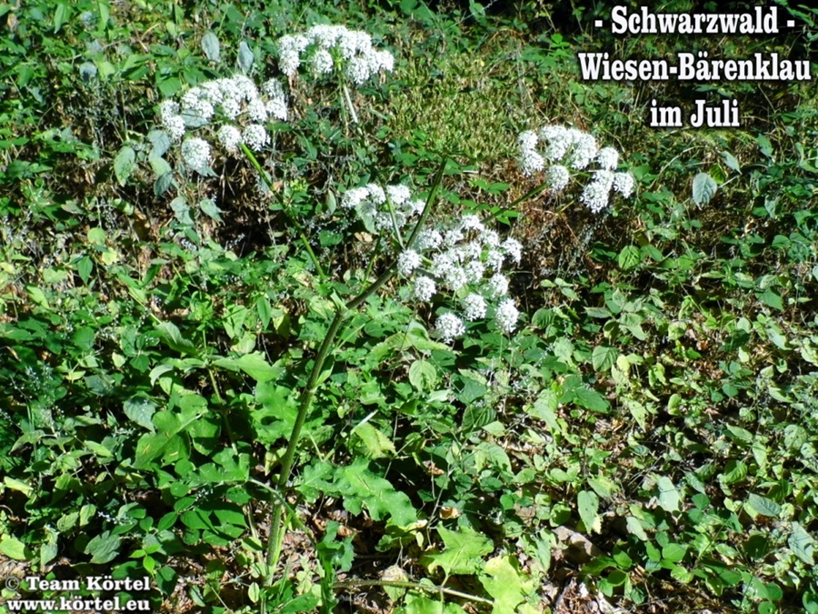 Vorsicht! Bitte nicht mit dem giftigen Riesen-Bärenklau oder Herkulesstaude (nächste 2 Fotos) verwechseln. Dieser ist größer und hat rötliche bis schwarz-rot-gefleckte Stängel. Vorsicht ist in der Hauptsache bei jungen Pflanzen geboten. Ausgewachsen kann er bis zu 3 m hoch werden...