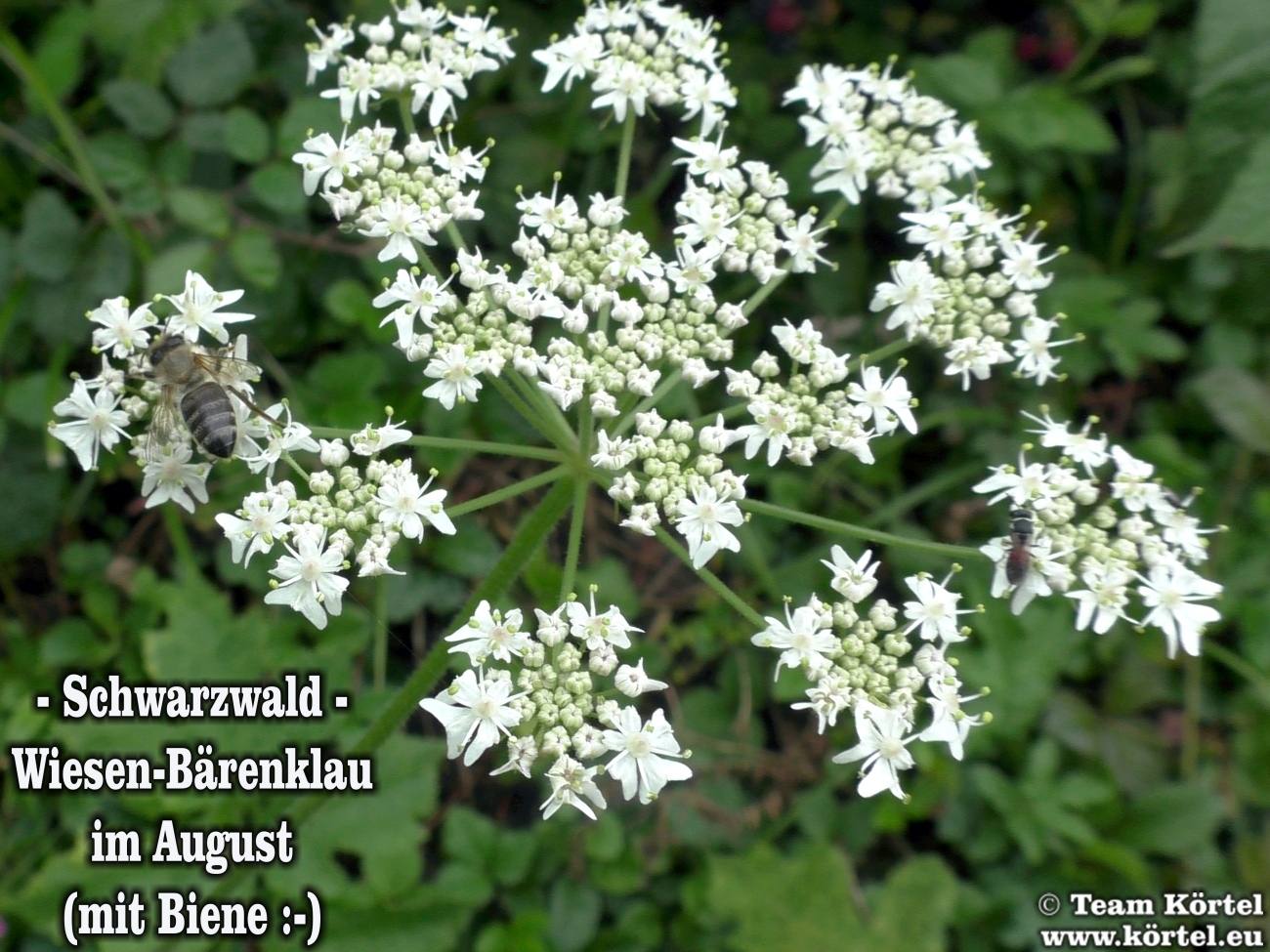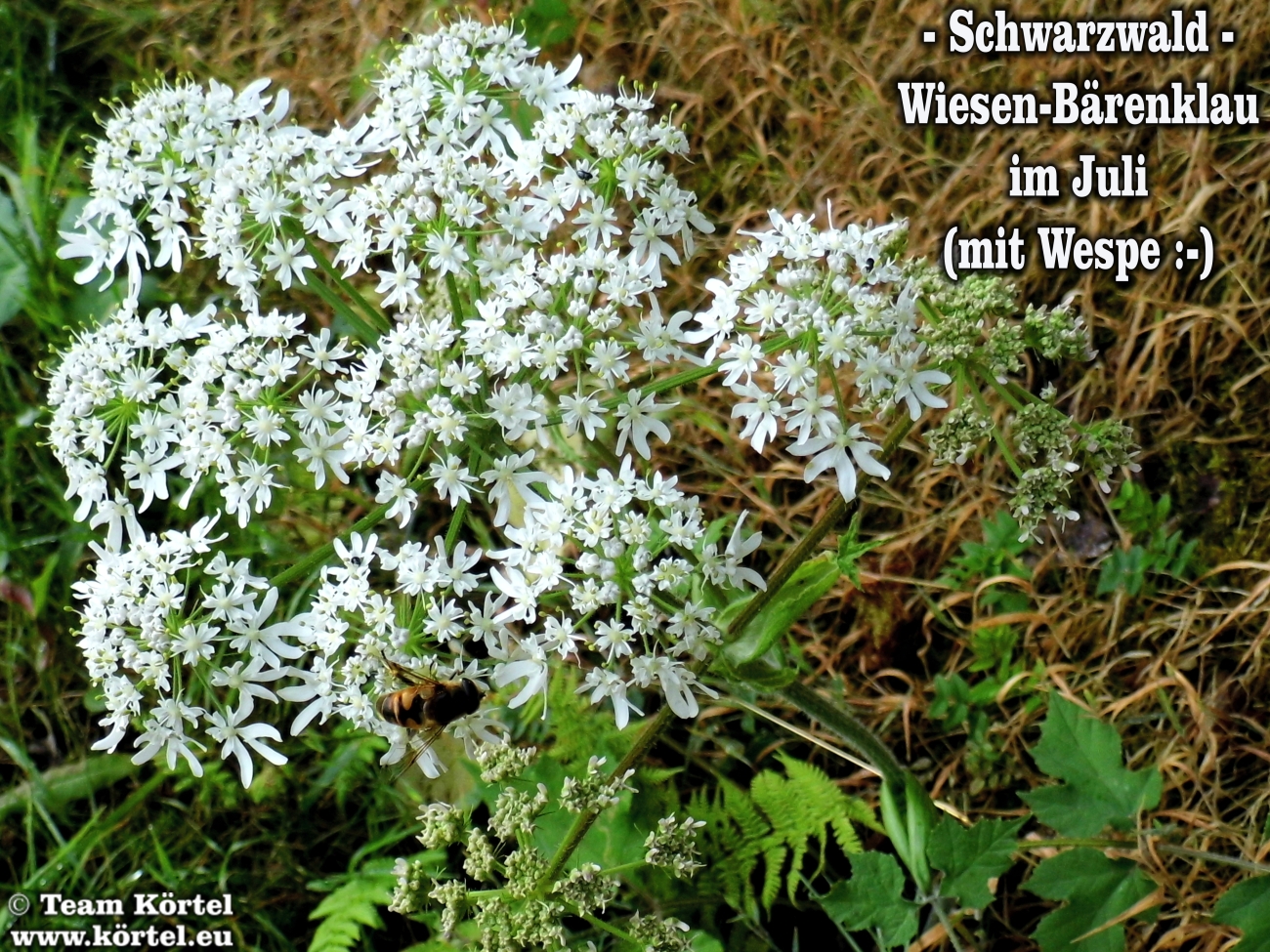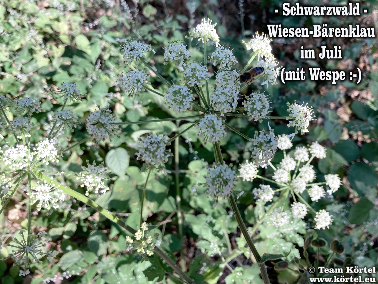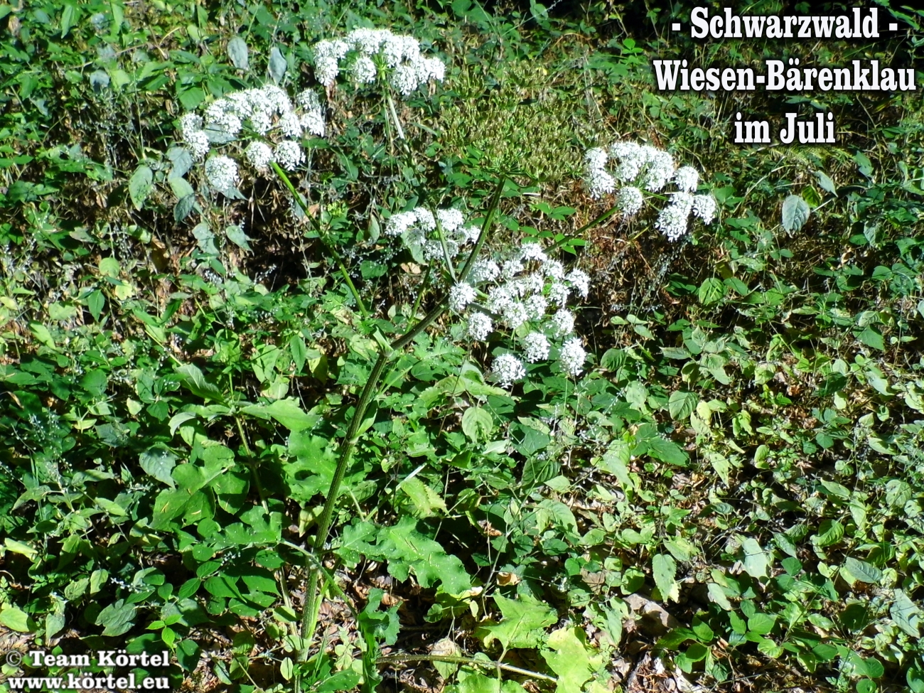 Vorsicht! Bitte nicht mit dem giftigen Riesen-Bärenklau oder Herkulesstaude (nächste 2 Fotos) verwechseln. Dieser ist größer und hat rötliche bis schwarz-rot-gefleckte Stängel. Vorsicht ist in der Hauptsache bei jungen Pflanzen geboten. Ausgewachsen kann er bis zu 3 m hoch werden...