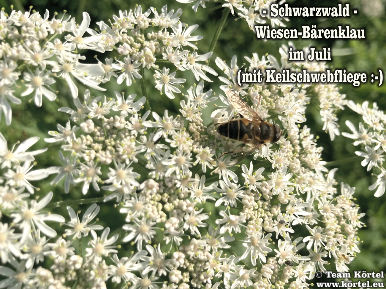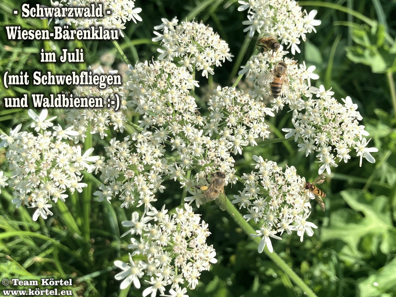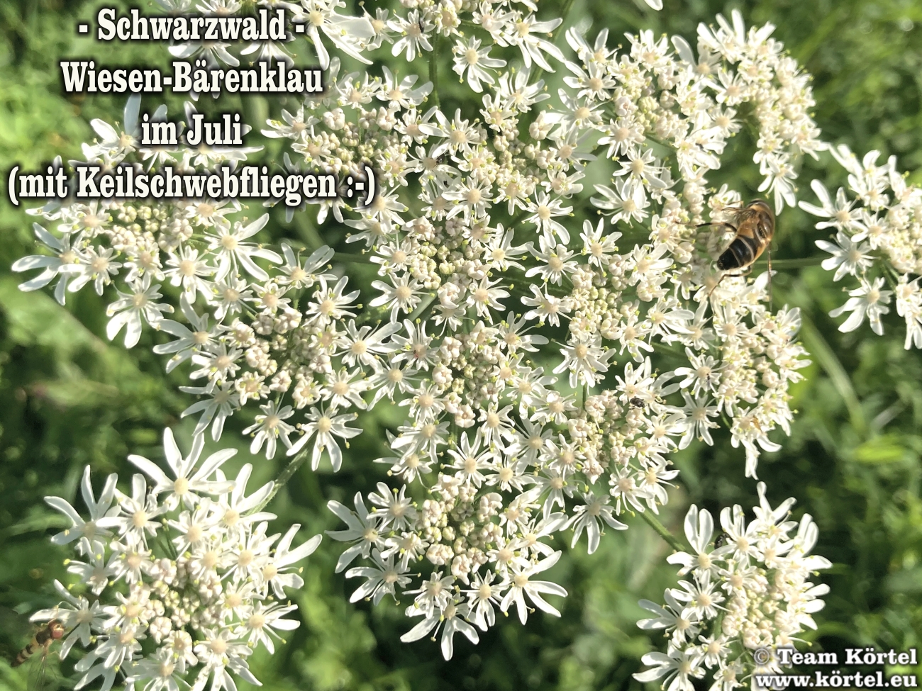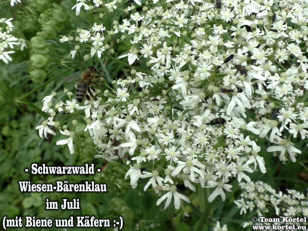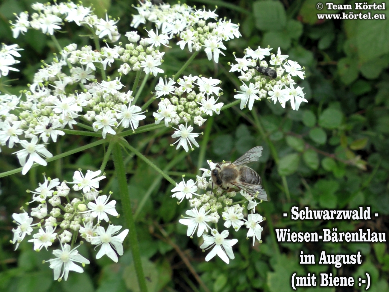 Vorsicht! Bitte nicht mit dem giftigen Riesen-Bärenklau oder Herkulesstaude (nächste 2 Fotos) verwechseln. Dieser ist größer und hat rötliche bis schwarz-rot-gefleckte Stängel. Vorsicht ist in der Hauptsache bei jungen Pflanzen geboten. Ausgewachsen kann er bis zu 3 m hoch werden...