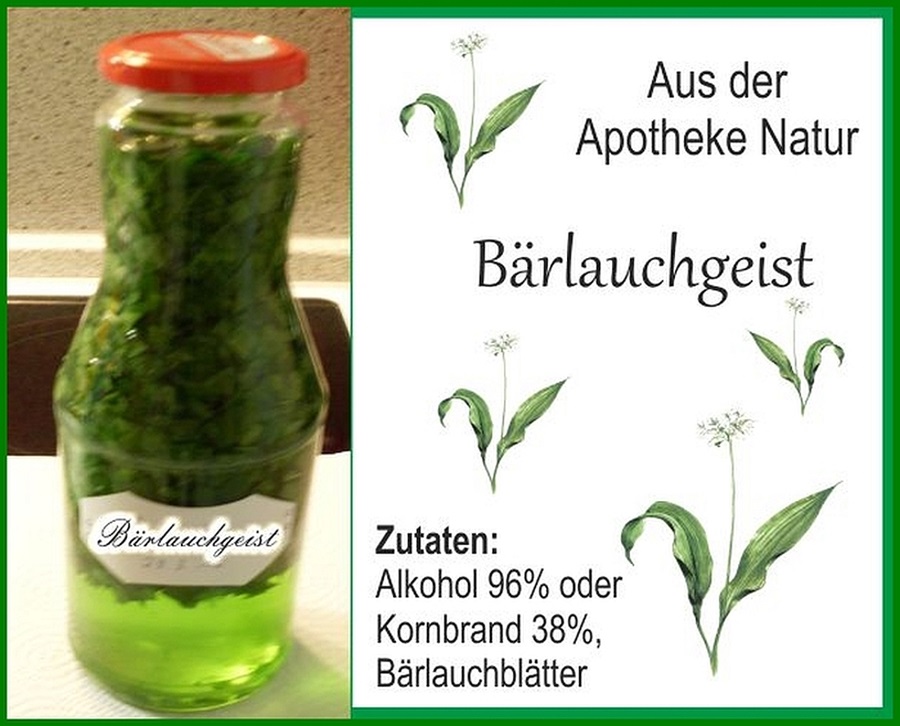 Die Blätter klein schneiden. Flasche (vorzugsweise Weithalsflasche) bis zum Flaschenhals füllen. Flasche mit mindestens 38% -igem Kornbrand oder Alkohol befüllen. Das Kraut muss vollständig bedeckt sein! Wer es mag, der kann auch etwas Kandis dazugeben - nicht zu viel, sonst schmeckts widerlich. 4-6 Wochen warm stellen und täglich schütteln. Durch ein sauberes Leinentuch filtern und in eine möglichst dunkle Flasche abfüllen.