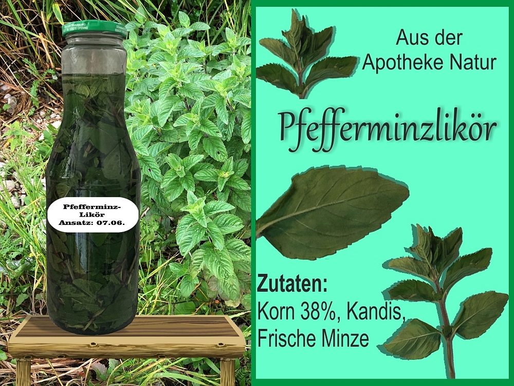 Blätter und Stengel klein schneiden. Flasche (vorzugsweise Weithalsflasche) bis zum Flaschenhals füllen. Flasche mit mindestens 38% -igem Kornbrand befüllen. Das Kraut muss vollständig bedeckt sein! Wer es mag, der kann auch einen Esslöffel Kandis dazugeben - nicht zu viel, sonst schmeckts widerlich. 4-6 Wochen reifen lassen und täglich schütteln. Durch ein sauberes Leinentuch filtern und in Flaschen abfüllen. Flaschen nicht ganz füllen, damit noch etwas Platz für's Zuckercouleur ist. Ca. 100 g Rohrzucker mit 1/4 L Wasser eindicken und dieses Zuckercouleur dazugeben-kräftig schütteln. Den Likör 4-6 Wochen ruhen lassen. Vor dem Genuss immer noch einmal schütteln.